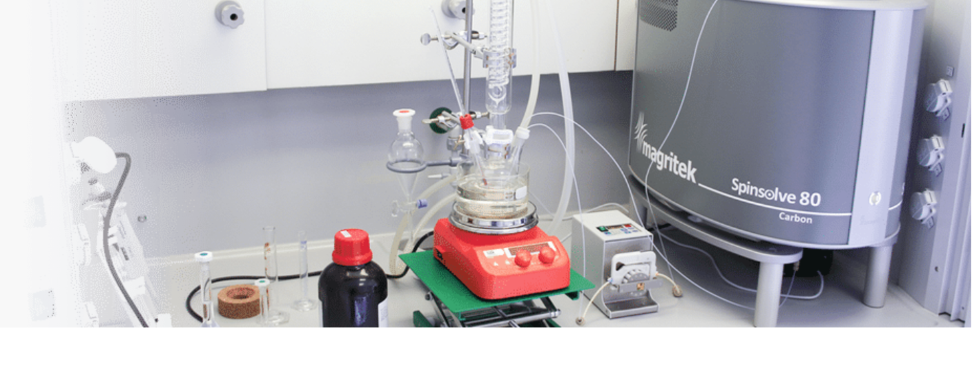 Spinsolve 高分解能卓上型NMR(核磁気共鳴)装置は、化学実験室のドラフトチャンバー(ヒュームフード)内に直接設置することができ、化学反応の進行をリアルタイムでモニタリングできます。